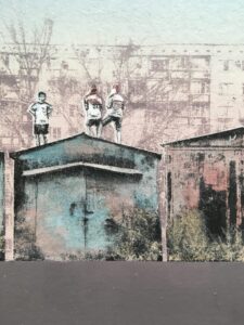 ПАТТЕРНЫ ПОВСЕДНЕВНОСТИ − серия графических работ. Каждая работа заключает в себе один из архетипических образов повседневности панельного квартала. Образы конструировались посредством совмещения рисунков, натурных съемок и фотографий из личного семейного архива автора и были объединены с помощью техник печатной графики. (бумажная литография, монотипия, линогравюра, диатипия)